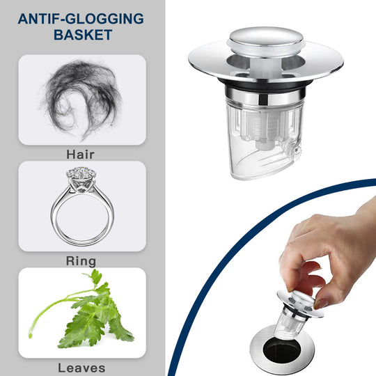 Bathroom Sink Stopper - Bounce Drain Filter, Pop Up Drain Stopper, Push Type Sink Drain Plug for Kitchen Bathroom Wash Basin with Hair Catcher Anti-Clogging StrainerFeature:Made of high quality brass, integrally formed zinc alloy, chrome finish...Regular price $8.00 -
