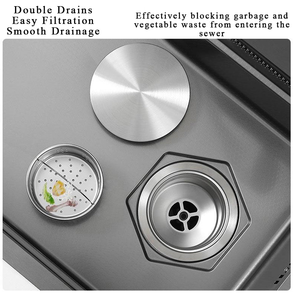 1. Sink: This product is a gun gray single sink (including a pull-out faucet), the panel is thickened and deepened, durable and not easy to deform.