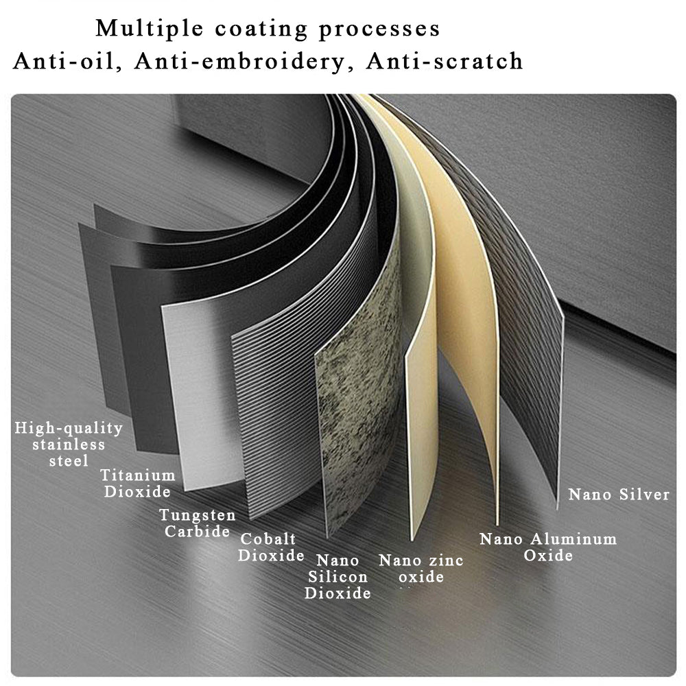 2. Whole body treatment: The main body is made of stainless steel, and the surface is treated with nano-coating fine wire drawing process. One-piece molding, stylish appearance, sturdy, wear-resistant, scratch-resistant, corrosion-resistant, and durable.