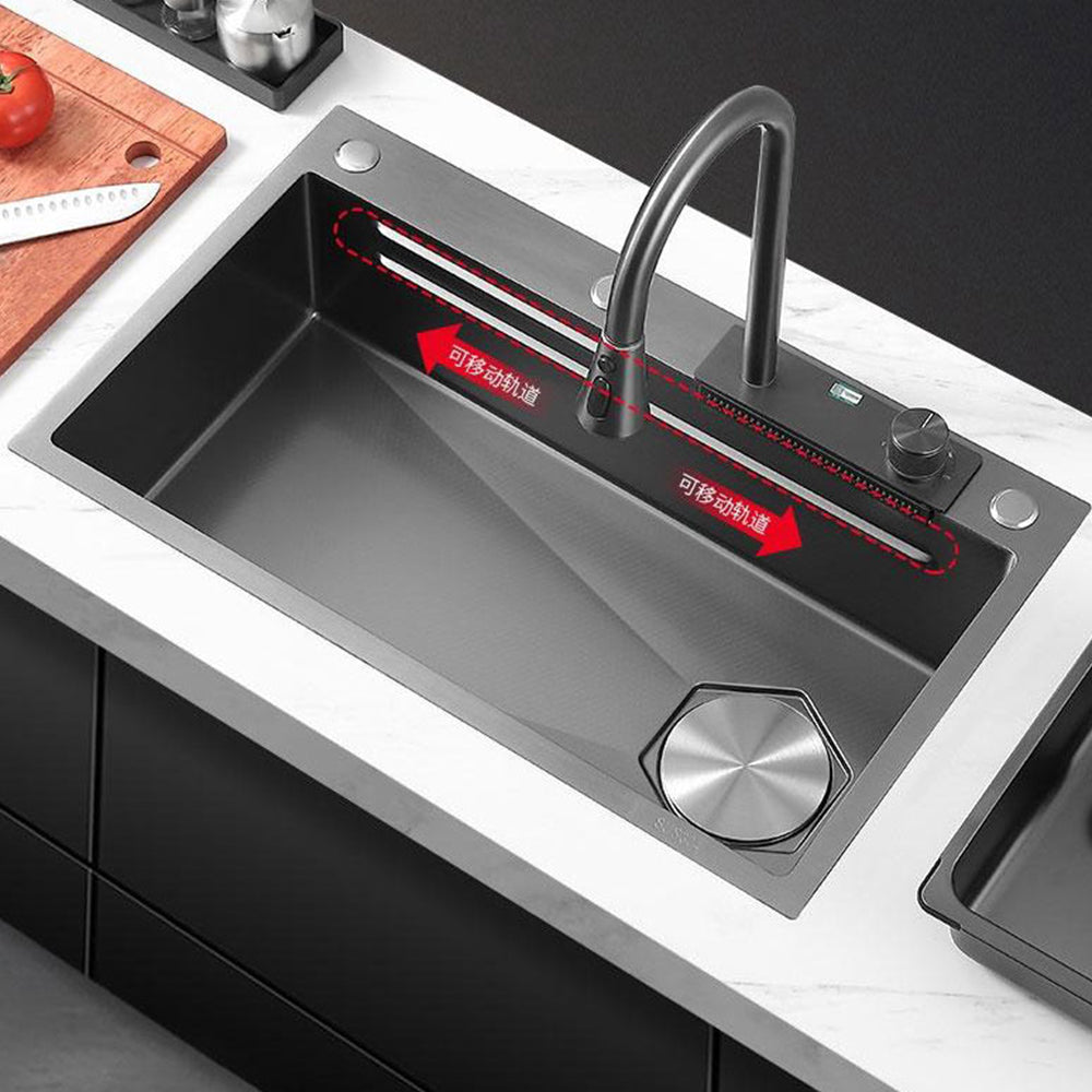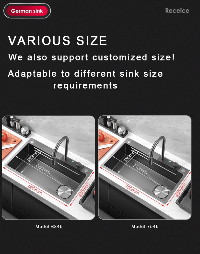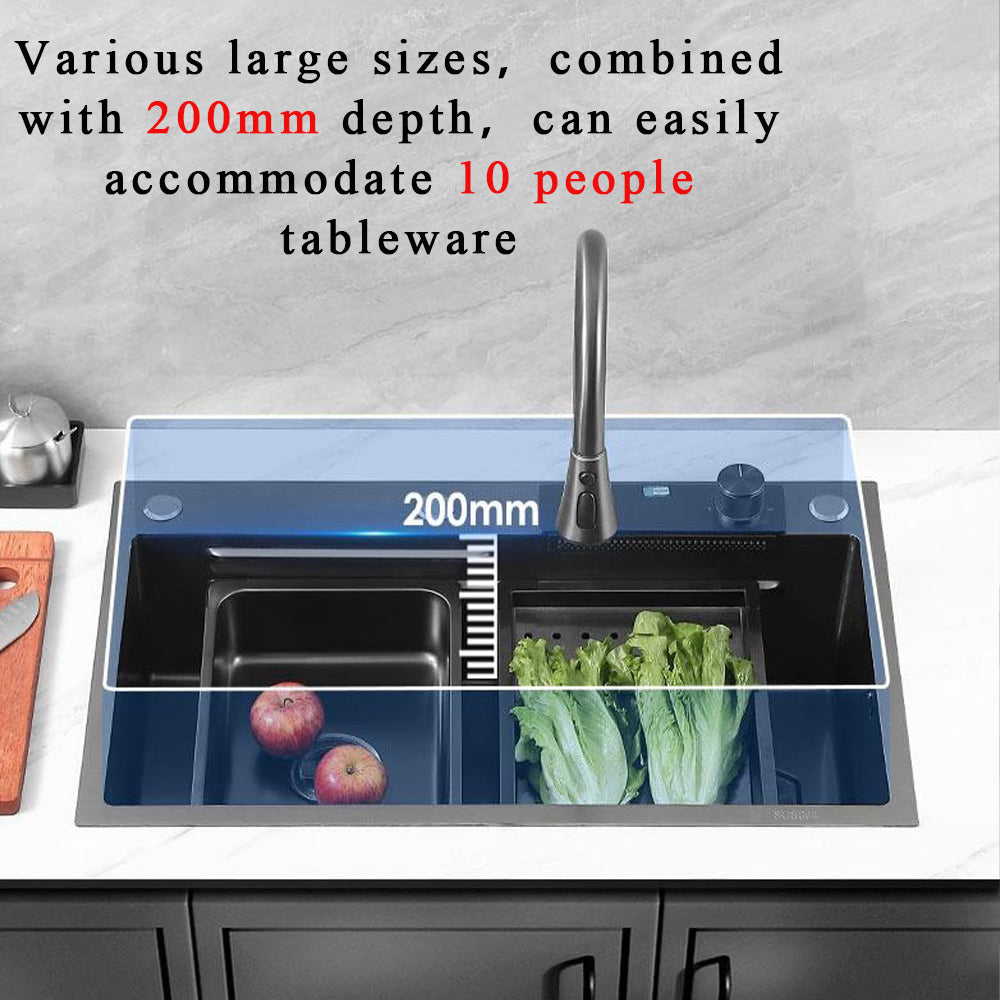 飞鱼水槽 新式大单槽 纳米304不锈钢 瀑布龙头出水 洗菜盆 洗碗池
