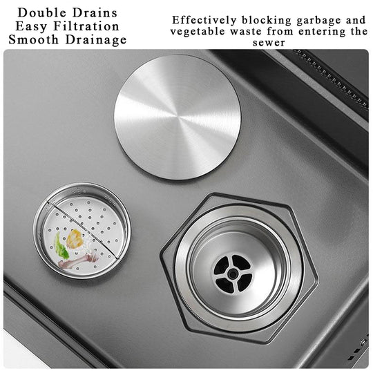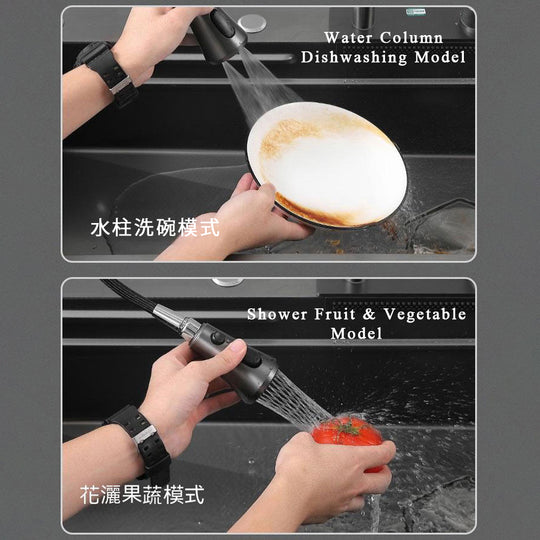 SOLD OUT                    Sink 304 Stainless Steel Handmade Kitchen Sink with Waterfall Faucet 飞鱼水槽 新式大单槽 纳米304不锈钢 瀑布龙头出水 洗菜盆 洗碗池 product features: 1. Sink: This product is a gun gray single sink (including a pull-out faucet), the panel is thickened and deepened, durable and not easy to deform. 2. Whole...Sale price From $2,704.00Regular price $116,538.00