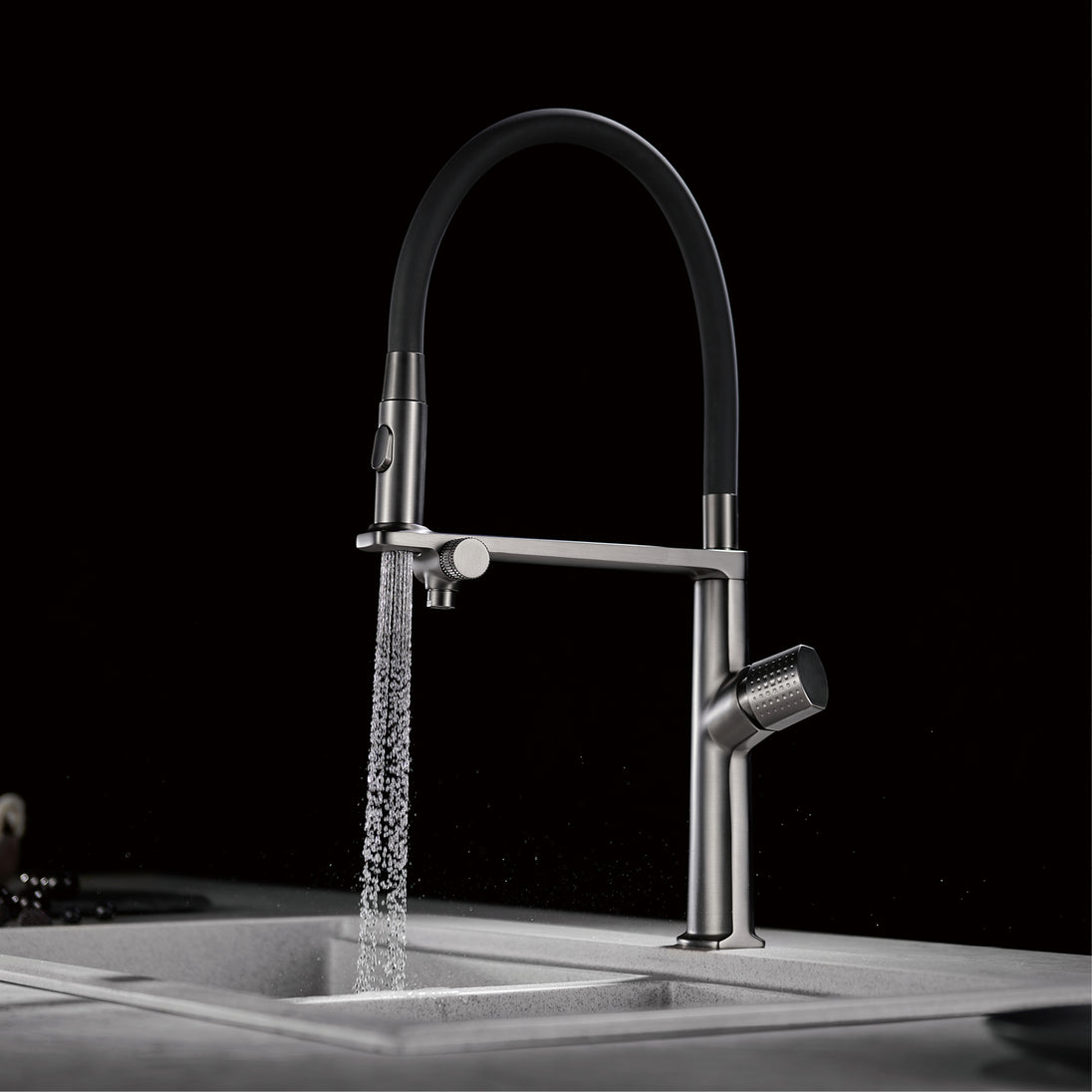 磁吸抽拉式雙控廚房水槽龍頭