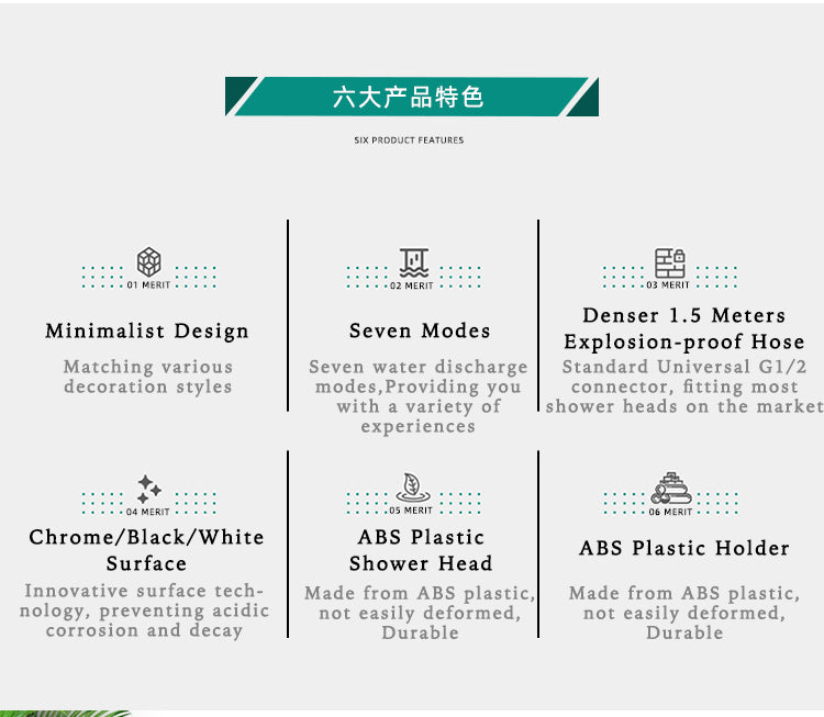 5. 標準 通用G1/2 連接器,適合市面上大多數淋浴噴頭