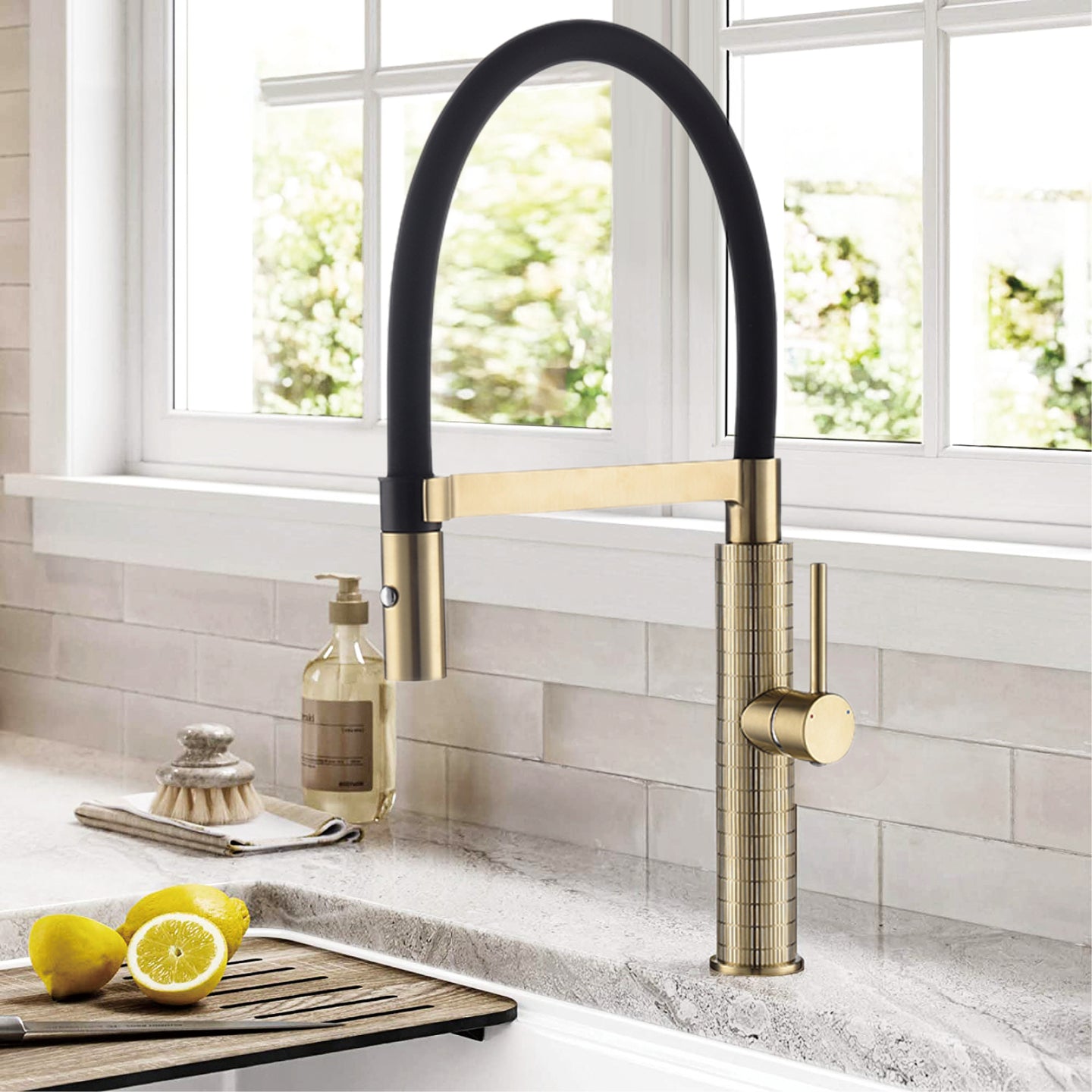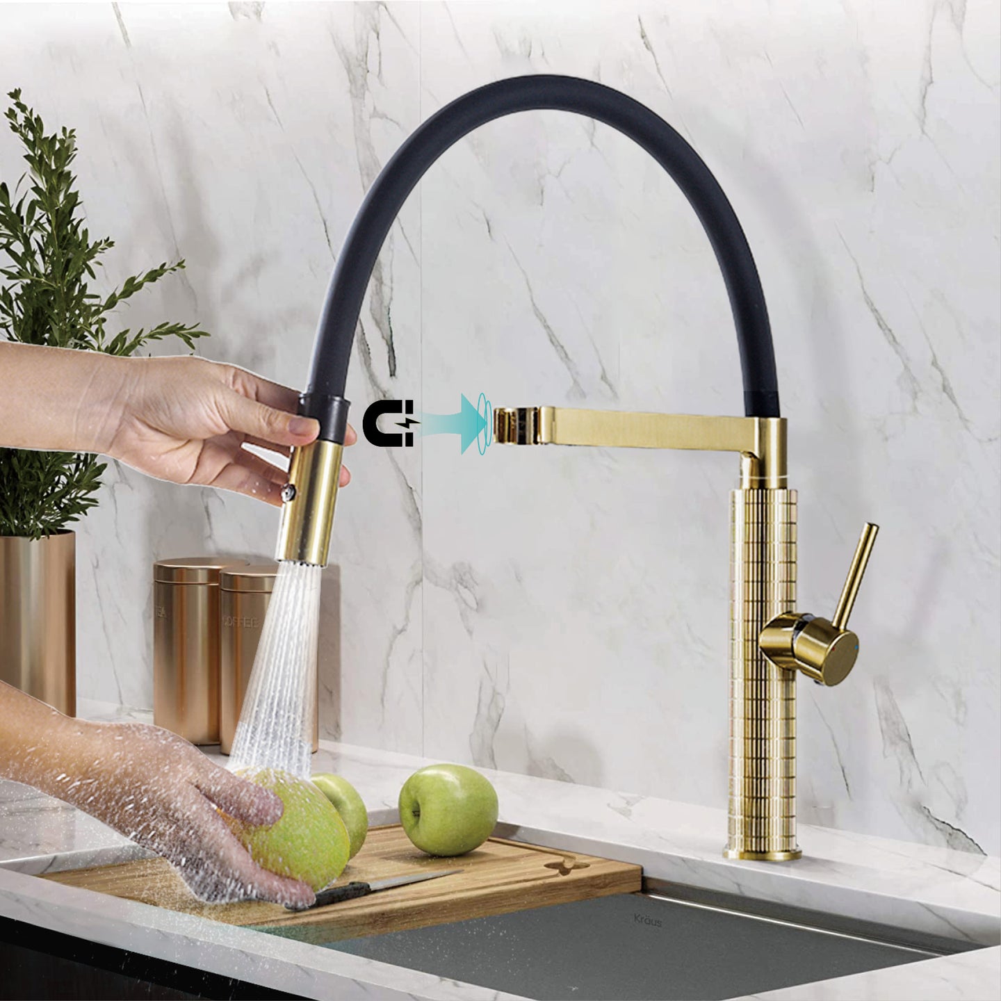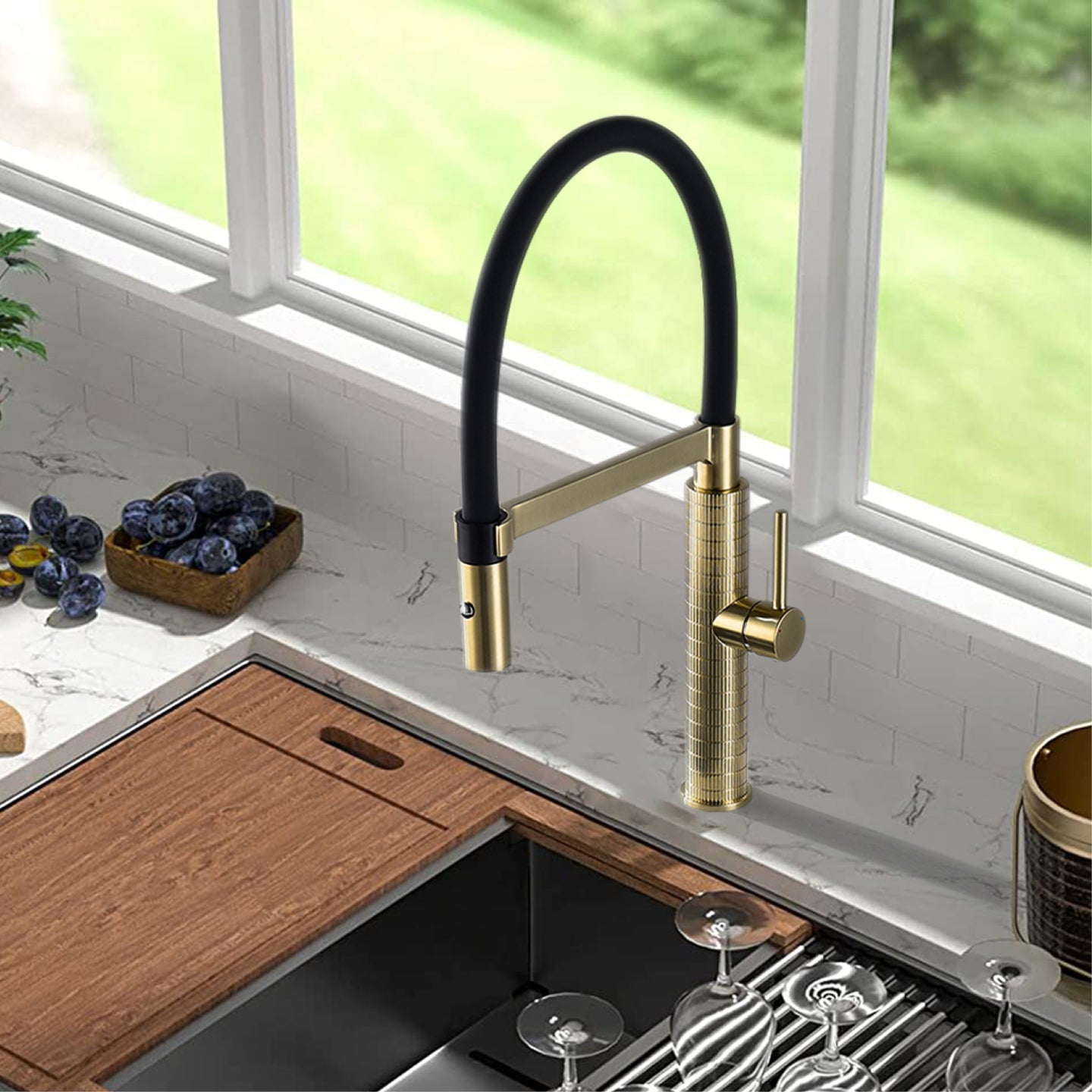 三通水龍頭,帶下拉式噴霧器水過濾器,適用於廚房水槽